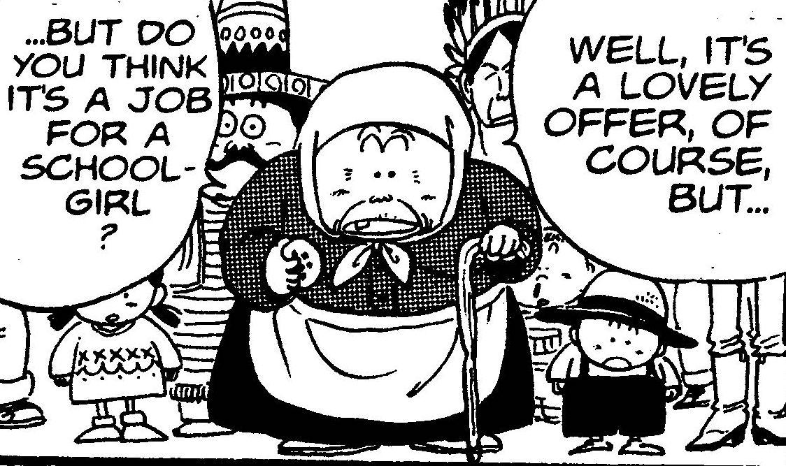 Ah, nous pensons donc au même personnage ! Elle était dans le village Oolong escroquait et a dit des choses comme "Tu veux dire ce machin ici ?" ou "Wassat maintenant?" Elle avait définitivement une façon unique de parler.