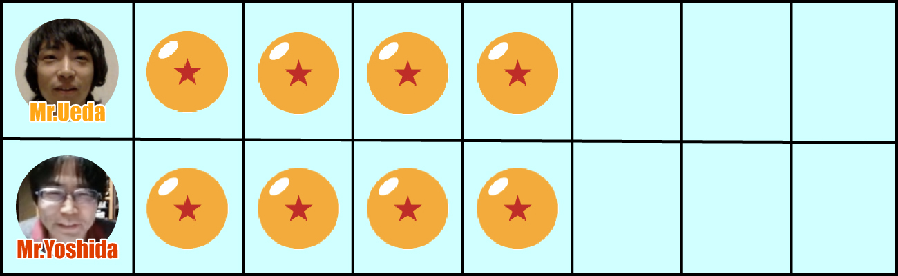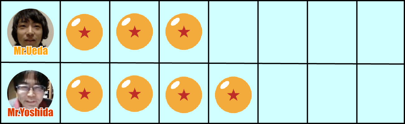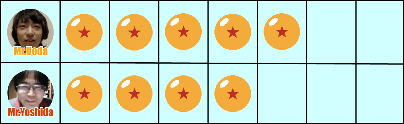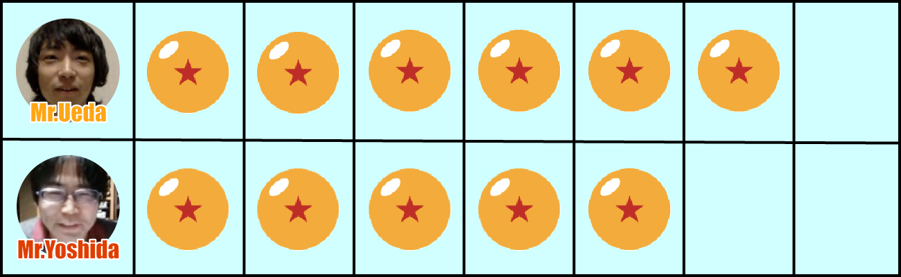 Nous avons terminé la dernière question et les résultats sont là ! Ueda a 6 bonnes réponses tandis que Yoshida en a 5. Cela signifie que le gagnant cette fois est Ueda !