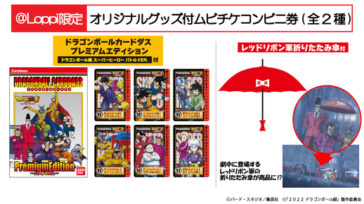 Obtenez soit un jeu de cartes «Dragon Ball Carddass Premium Edition - Dragon Ball Super: SUPER HERO Battle Version » ou un parapluie pliant Red Ribbon Army avec vos billets de cinéma !