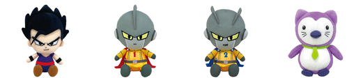 Que vous souhaitiez les asseoir dans votre chambre ou les emmener à l'aventure, ces jouets en peluche Chibi ont la bonne taille ! La gamme comprend quatre personnages de Dragon Ball Super: SUPER HERO: Ultimate Gohan, Gamma 1, Gamma 2, et Penkon, le jouet en peluche qui apparaît dans le film !!