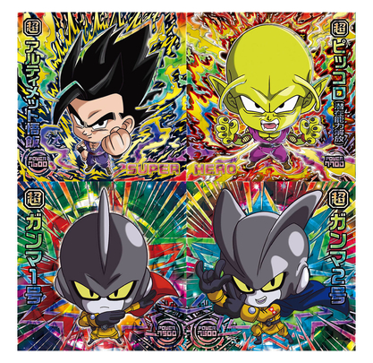 Les stars du nouveau film, Gohan, Piccolo, Gamma 1 et Gamma 2, arrivent dans de magnifiques autocollants scintillants !