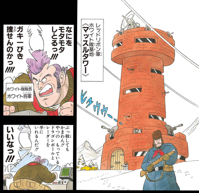 General White commandait l'unité blanche de l' Red Ribbon Army depuis son poste de Muscle Tower, qui dominait la région extrêmement glaciale du nord. Malgré son rang élevé, c'était un homme lâche qui a eu recours à l'enlèvement du chef du Jingle Village et menacé les hommes qui y vivaient pour qu'ils traquent le Dragon Ball caché dans la région pour lui.
