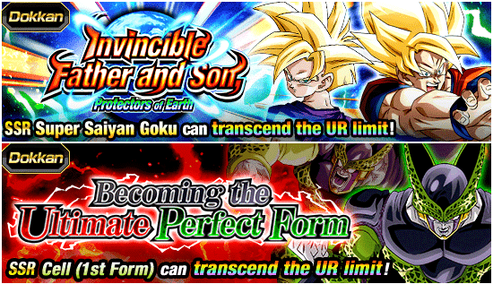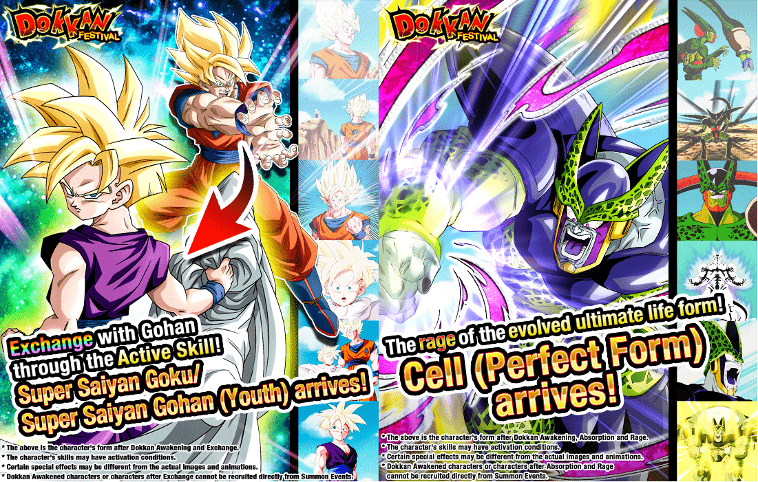 *Les personnages illustrés ci-dessus sont les versions Dokkan Awakened des personnages qui peuvent être obtenus à partir de leurs invocations respectives, [Tense Battlefield] Super Saiyan Goku et [Monster Created by a Computer] Cell (1ère forme).
