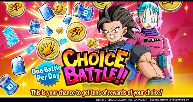 Vous pouvez choisir parmi les quatre types de batailles où vous pouvez marquer des éléments tels que des Slot Removers, des Médailles SPARKING, des Skip Tickets, et plus !