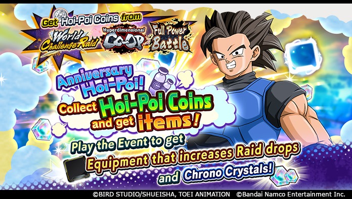 Échangez vos pièces doubles dans la boutique d'échange contre des objets tels que des tickets d'invocation et le pouvoir Multi-Z ! Vous pouvez également tenter votre chance dans l'événement Anniversaire Hoi-Poi avec les pièces Hoi-Poi que vous collectez !