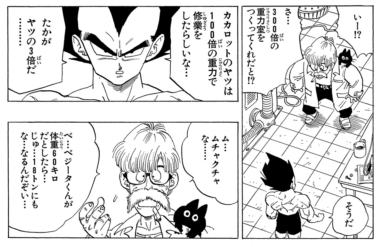 Ôta :Hmm... J'imagine que puisque Vegeta fait partie de la famille royale Saiyan, il a été élevé dans un environnement où il y avait beaucoup de pression pour devenir plus fort. Il est également raisonnable de supposer qu'il s'est rendu compte qu'il était plus fort que ceux qui l'entouraient.