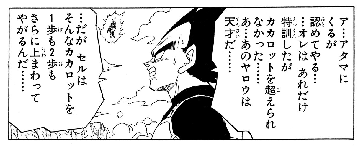 -- J'ai l'impression qu'il y a beaucoup de scènes où Vegeta est montré obsédé par la façon de gagner.