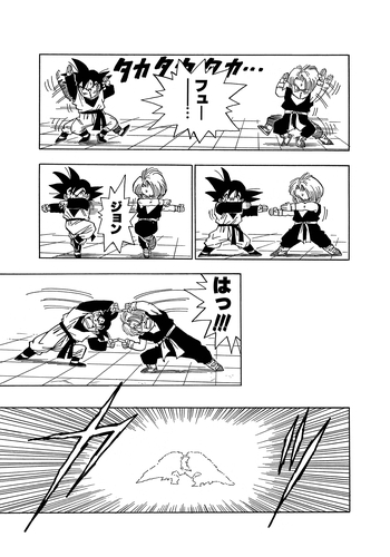 Après une journée de pratique supplémentaire, les deux garçons réussissent à fusionner en Gotenks tout en étant transformés en Super Saiyans, mais la fusion s'épuise avant qu'ils ne puissent tester leur force contre Majin Buu.