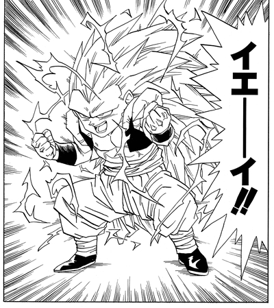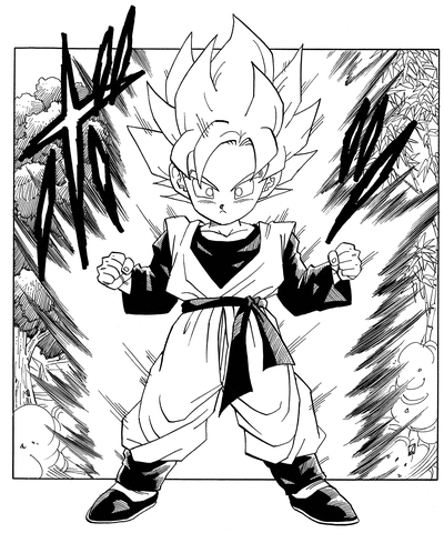 Alors que Goku et Gohan ont dû lutter pour enfin réaliser cette transformation, Goten l'atteint facilement en utilisant uniquement son propre talent naturel.