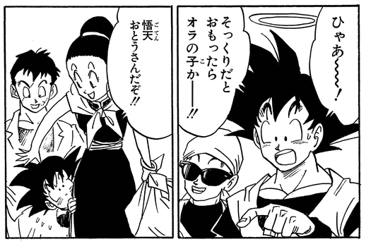 Goten est le deuxième enfant de Goku qu'il a laissé derrière lui avant la bataille avec Cell.