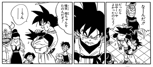 La mère de Goten, Chichi , est transformée en œuf par le maléfique Majin Buu, qui la piétine cruellement, la tuant dans le processus. Goten parvient à peine à réprimer sa rage et entre dans la Room of Spirit and Time avec Trunks afin qu'ils puissent devenir assez forts pour vaincre le Majin nouvellement transformé.