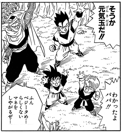 Plus tard, Goten maîtrise la technique "Fusion" sous la tutelle de Goku et Piccolo.