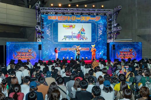 La scène a également été honorée par le responsable des relations publiques préféré de tous, Kopei de Super Dragon Ball Heroes, et Victory Asada, éditeur de V Jump , pour un match de confrontation spécial ! Leur bataille a été pleine de rebondissements passionnants et a montré des tonnes de mouvements spéciaux des cartes présentées dans le dernier ensemble de Heroes !
