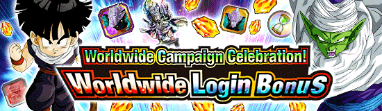 Célébration de la campagne mondiale ! Le bonus de connexion mondial est maintenant disponible ! Lors de votre première connexion, vous recevrez des cadeaux géniaux comme des tickets d'invocation spéciale "50" et une pierre de dragon divin 16 que vous pourrez échanger contre des personnages Dokkan Awakened dans la boutique de Baba ! De plus, vous connecter tous les jours pendant la période de la campagne vous permettra d'obtenir 2 pierres de dragon et des objets incroyables comme des statues d'Hercule (Platinum), [Rituel mystérieux] Elder Kai et plus encore ! Assurez-vous de vous connecter tous les jours afin de pouvoir recevoir ce trésor de merveilleux cadeaux !