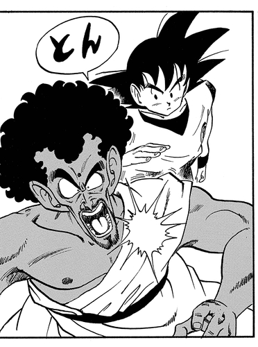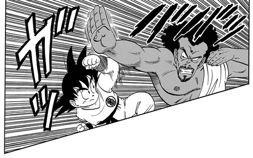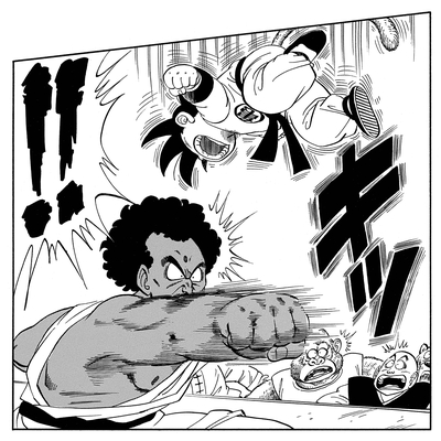 Cela amène l'ancien champion à devenir sérieux, déployant son incroyable Hasshu-Ken (Eight-Handed Technique)! Même cela s'avère inefficace car Goku bloque et esquive facilement chaque attaque avant d'envoyer le King Chappa au sol avec un coup de pied de balayage. Lorsque Goku fait apparemment une erreur stratégique en sautant dans les airs et en limitant ainsi sa mobilité, le King Chappa se prépare à porter le coup gagnant. Vous pouvez imaginer le choc du roi lorsque Goku expire si fort qu'il ralentit sa descente et esquive l'attaque imminente. Le King Chappa se retrouve alors bientôt mis hors jeu par un coup de pied habile lancé par le jeune Saiyan.