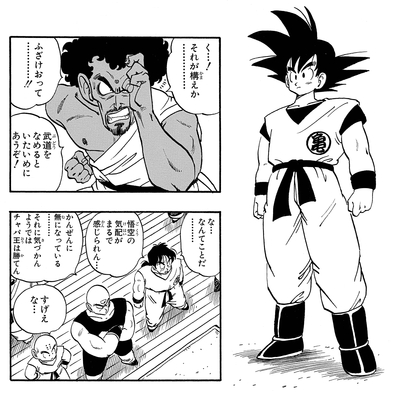 Lorsque leur match dans le 23e Tenkaichi Budokai a commencé, Goku n'a dégagé pratiquement aucune présence. Tenshinhan et les autres ont été immédiatement impressionnés par cela, mais pour le King Chappa, il est apparu que Goku était juste immobile, ce qui l'a amené à remarquer : "Quoi… ? ! Vous appelez ça une position… ? Se moquer des arts martiaux… Vous allez souffrez pour ça !" En fin de compte, c'était King Chappa qui ne prenait pas les choses assez au sérieux. Il n'a pas pu sentir à quel point Goku était devenu plus fort, ce qui lui a fait subir une nouvelle défaite.