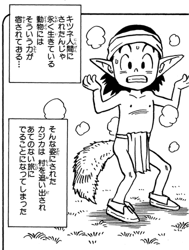 Kajika se fait également pousser une queue à la suite de la malédiction, ce qui le fait ressembler beaucoup à un Saiyan !