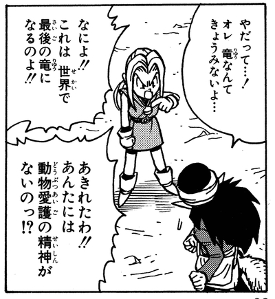 La nature volontaire de l'héroïne semble se révéler lorsqu'elle devient sérieuse, et son langage intense rappelle celui d'une certaine autre fougueuse de Dragon Ball!