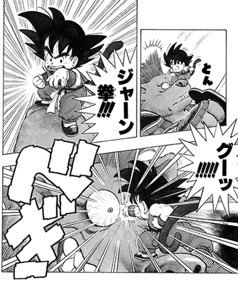 Lors du 21e Tenkaichi Budokai, après avoir une fois les trois frappes parfaitement bloquées par Jackie Chun , Goku change les choses en appelant «papier» mais en utilisant un coup de poing explosif «rock» à la place! Ayant succombé à la plus vieille astuce du livre, Jackie s'effondre un instant mais se rétablit rapidement.