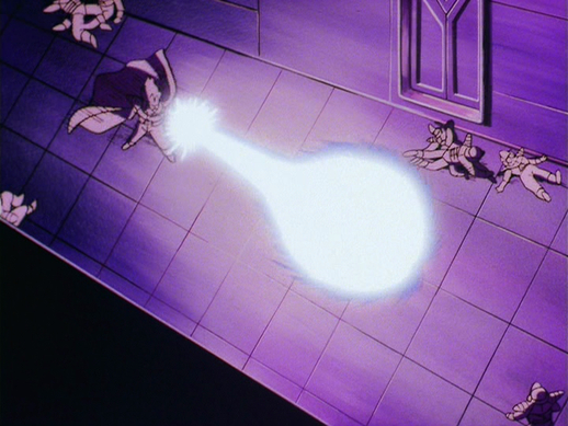 Le King Vegeta extermine l'un de ses sous-fifres d'un puissant coup de la main droite après que le malheureux soldat l'a informé que l'occupation de la planète Tazba prend plus de temps que prévu.