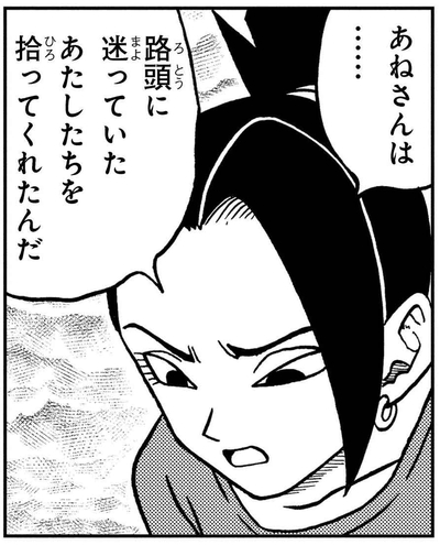 Caulifla accepte toutes sortes de personnes n'ayant nulle part où aller dans son gang et les laisse vivre avec elle dans leur cachette.