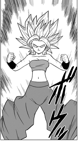 Elle a appris à passer au Super Saiyan par Cabba et a montré la force de la forme contre Frieza lors du Tournament of Power.