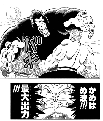 Les choses s'aggravent une fois de plus lorsque Goku aperçoit la pleine lune au-dessus, le faisant se transformer en singe géant et se déchaîner ! Jackie n'a alors d'autre choix que de charger un Kamehameha à la puissance maximale et de faire sauter la lune elle-même pour inverser la transformation !