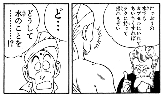 Jackie rencontre également Namu, qui avait été vaincu par Goku lors de son tour et rendu incapable d'acheter de l'eau à ramener dans son village frappé par la sécheresse avec le prix en argent du tournoi. Jackie sent la détresse du jeune homme et vient à son aide en lui donnant une Hoipoi Capsule vide à agrandir, à remplir d'eau, puis à rétrécir et à ramener facilement dans son village !