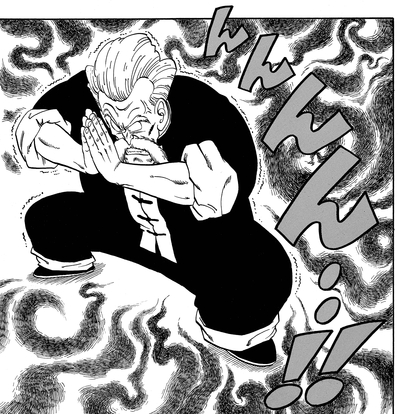 L'utilisateur de cette technique peut arrêter un adversaire dans son élan en plaçant les deux mains côte à côte, paumes ouvertes, et en concentrant ses nerfs pour envoyer une explosion puissante comme un choc électrique ! C'est une technique très dangereuse, c'est pourquoi la seule autre personne qui a forcé Jackie Chun à l'utiliser est l'un de ses autres élèves, le parent adoptif de Goku, Papy Gohan !
