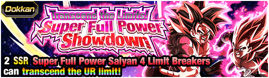L'événement Dokkan « Transcend the Limits! Super Full Power Showdown » est en cours ! Les médailles d'éveil obtenues lors de cet événement peuvent être utilisées pour Dokkan Awaken, la collaboration invoque des personnages [Blazing Crimson Power-Up] Super Full Power Saiyan 4 Limit Breaker Goku (Xeno), [Flaring Crimson Power-Up] Super Full Power Saiyan 4 Limit Breaker Vegeta (Xeno) et [Ambition to Overthrow Zen-Oh] Super Hearts, alors affrontez les ennemis Super Saiyan 4 qui brisent les limites dans des batailles brûlantes et collectez-en autant que vous le pouvez !