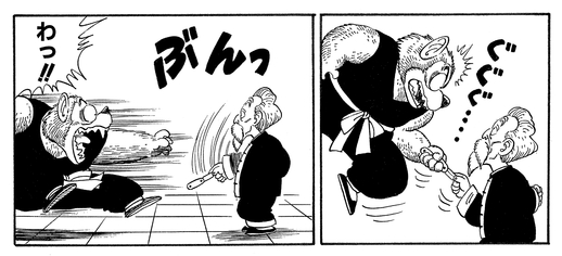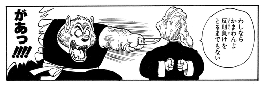 Jackie Chun contrecarre cette attaque en lançant un de ses propres objets : un os ! Incapable d'ignorer ses instincts sauvages, Man-Wolf le chasse hors des limites, ce qui entraîne une sonnerie.