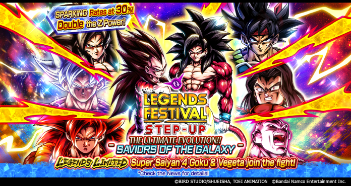 Le tout nouveau personnage Tag de Legends, LEGENDS LIMITED Super Saiyan 4 Goku & Vegeta (DBL53-01S), rejoint le combat dans cette incroyable Invocation Step-Up ! Toutes les étapes ont le double de la puissance Z régulière à gagner ainsi qu'un taux d'abandon de personnage SP de 30 %, et la 6e étape est une invocation consécutive gratuite !
