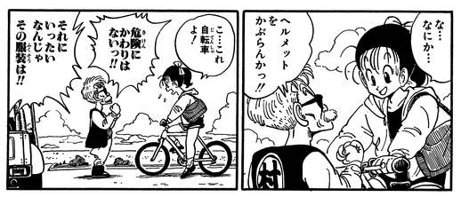 Bientôt, il aperçoit une villageoise qui fait du vélo sans casque !