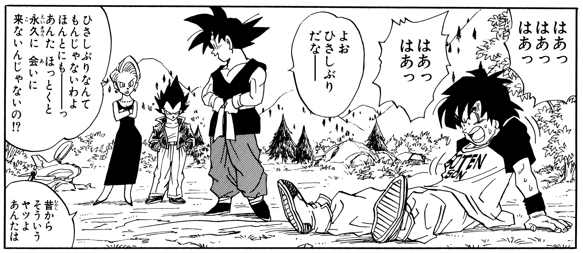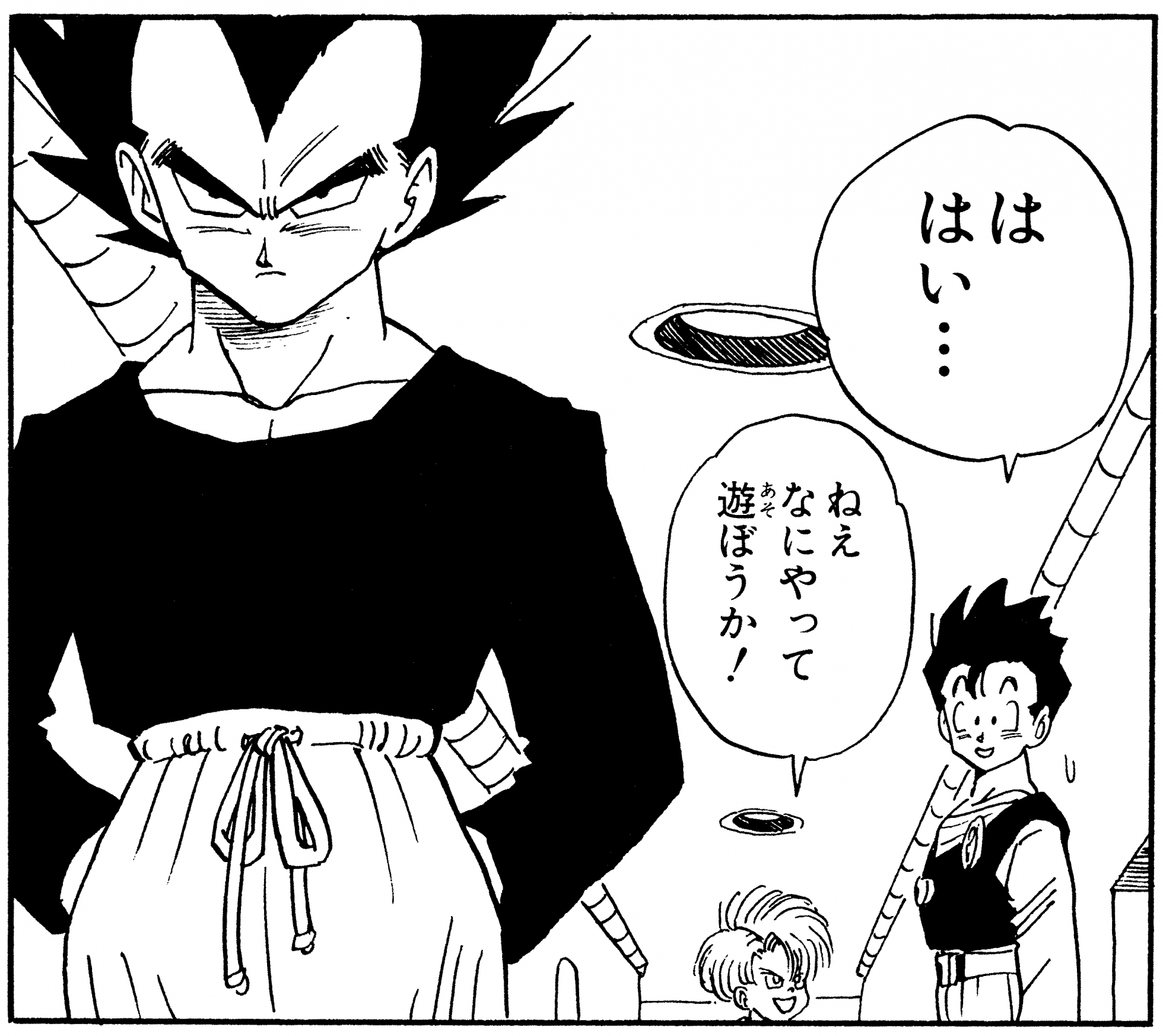Vegeta a pu être vu arborant des tenues plus intéressantes après avoir commencé à s'écraser chez Capsule Corporation. Ce sont les vêtements dans Frieza il s'est dirigé lorsque Frieza et King Cold rendu visite à la Terre. La chemise était particulièrement mémorable pour être légèrement surdimensionnée, rose, et avoir le mot "BADMAN" écrit sur le dos. Bulma avait l'air fabuleuse aussi avec ses cheveux coiffés dans une grande permanente à l'époque. Peut-être qu'il y a quelque chose dans la vie à West City qui donne envie aux gens de s'habiller pour impressionner?