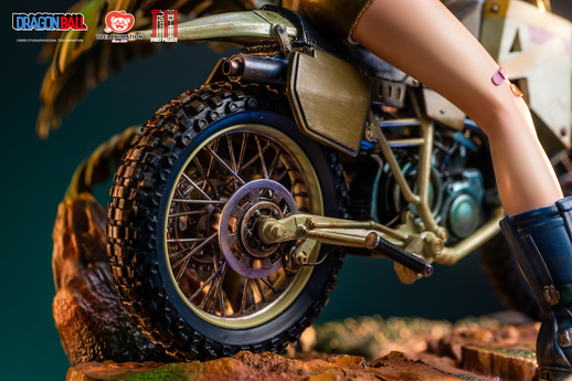 Et comme si cela ne suffisait pas, même la moto qu'elle conduit est recréée dans les moindres détails depuis sa brève apparition dans l'anime ! Non seulement il capture toutes les caractéristiques uniques d'un véhicule conçu par Toriyama, mais il est coloré pour ressembler à une moto qui a passé son temps sur la route. C'est certainement le point culminant de cette incroyable figurine de statue !