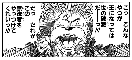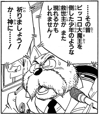 Le World King est obligé d'assister de première main à la destruction de sa ville bien-aimée aux mains de Piccolo. Terrifié par l'incroyable pouvoir exercé par ce nouvel ennemi, le roi décide à contrecœur de renoncer au trône.