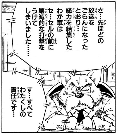 Dans l'arc Android/ Cell , la planète est une nouvelle fois plongée dans la terreur, cette fois par les ambitions tordues de Cell. Le World King déploie la Royal Defense Force et lance une offensive totale contre Cell, mais son armée est complètement décimée par le terrifiant bio-androïde.