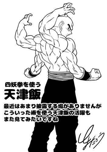 L'illustration de ce mois-ci est Tenshinhan utilisant son Shiyo-Ken !
