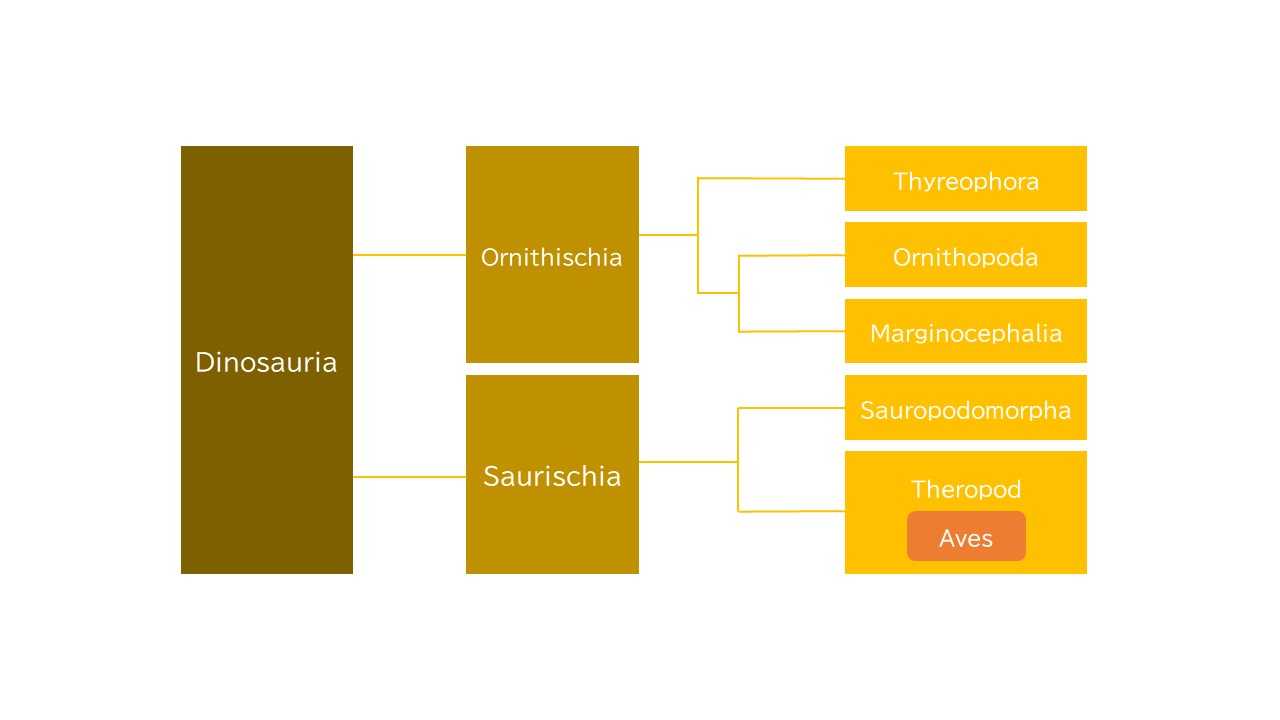 Un tableau de classification des dinosaures. Le dinosaure qui a attaqué Gohan semble être un membre de la branche "theropoda", qui appartient à la division Saurischia des dinosaures.
