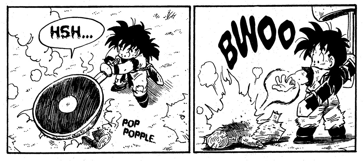 Hattori: Je pense qu'il est clair que Gohan a commencé avec des capacités qui dépassent de loin celles d'un humain normal, mais quoi qu'il en soit, une queue qui pouvait être coupée si facilement avec une épée devait être plutôt douce au départ. À titre de comparaison, les animaux marins tels que les baleines ont des parties molles sur leur corps malgré leur très grande taille. D'autre part, la plupart des animaux terrestres ont tendance à avoir des peaux très épaisses et sèches afin de réduire la perte d'humidité.