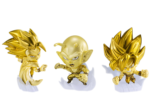 Ajoutez une étincelle dorée à vos présentoirs avec ces 3 figurines incroyables et super rares ! Essayez d'afficher ce trio de Ultimate Gohan (Gold Ver.), Piccolo (Power Awakening) (Gold Ver.) et Goku (Super Saiyan) (Gold Ver.) ensemble pour une configuration vraiment élégante !