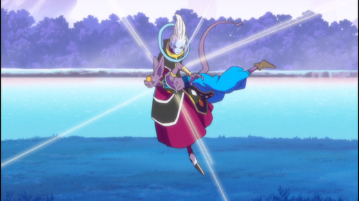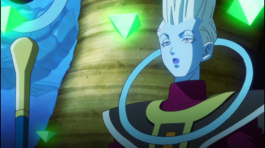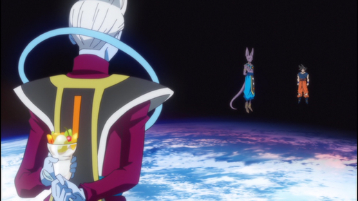 Beerus goûte pour la première fois au wasabi et commence à devenir incontrôlable en raison de son piquant, mais Whis est capable d'intervenir et de maîtriser le God of Destruction qui détruit la planète avec une seule côtelette de karaté, révélant que le préposé aux manières douces est loin plus fort qu'il en a l'air.