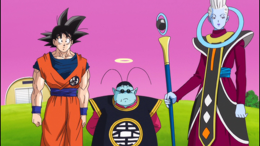 Beerus est choqué d'apprendre que Frieza a été abattu alors qu'il hibernait, et Whis utilise donc son bâton pour lui montrer la bataille qui a eu lieu entre l'empereur galactique et celui qui l'a vaincu : un Saiyan connu sous le nom de "Goku". et "Kakarot".