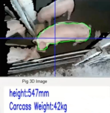 Lorsque l'appareil photo capture un cochon, son poids s'affiche sur les lunettes intelligentes.