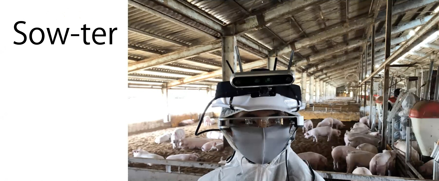 Kawasue : Oui, nous utilisions un écran standard au début, mais lorsque les lunettes intelligentes ont vu le jour, j'ai réalisé que je pouvais les utiliser pour mon invention. Fixer à la fois l'appareil photo et les lunettes intelligentes à la tête de l'utilisateur lui laisse les mains libres, de sorte qu'il peut toujours guider les cochons, noter les chiffres et effectuer toutes les autres tâches dont il a besoin, ce qui le rend très efficace.