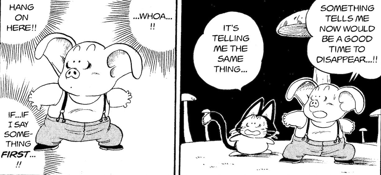 Kawasue : J'aime les personnages qui peuvent s'en tirer avec n'importe quoi, les personnages que vous ne pouvez pas vous résoudre à détester, peu importe ce qu'ils font, et donc je dois dire que mon préféré est Oolong. Ça ne pouvait pas être quelqu'un d'autre.