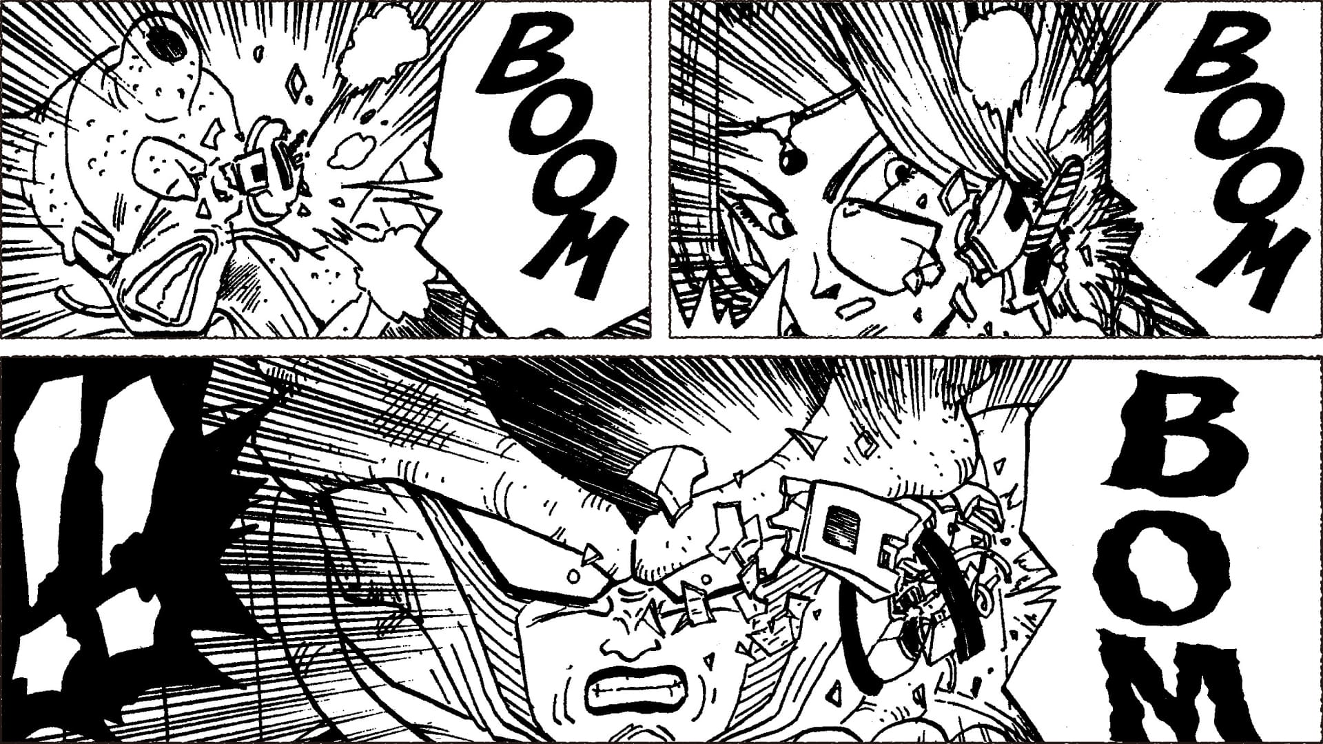 Kato : C'est vrai, les scouts déclarés « cassés » et qui explosent soudainement étaient un élément essentiel des scénarios d'arc Saiyan et Frieza . En fait, je voulais vous demander si les Sow-ters pouvaient aussi exploser, mais j'avais peur que vous pensiez que je suis un idiot si je le faisais, alors j'ai gardé la bouche fermée.