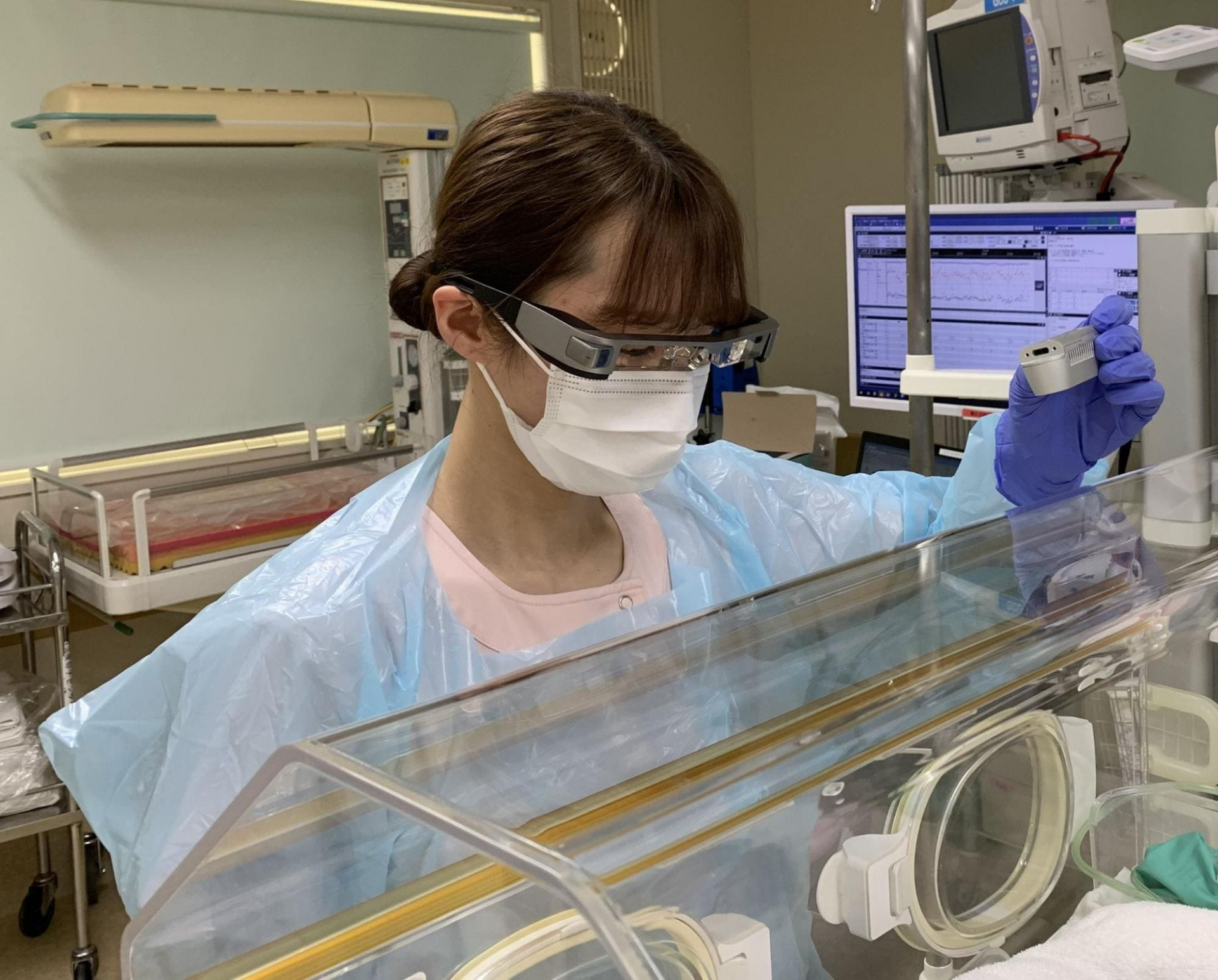 Un "Scouter" utilisé pour peser un nouveau-né à l'hôpital universitaire de Miyazaki (fourni par Kawasue)