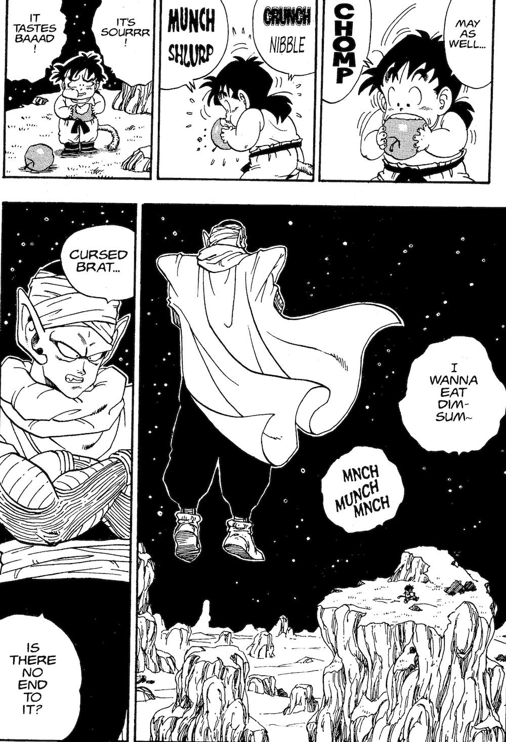 ・Les scènes de Piccolo entraînant Gohan sont mes préférées. Gohan mangeant les feuilles de pomme Piccolo pour lui et l'appelant aigre était trop mignon.