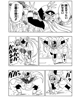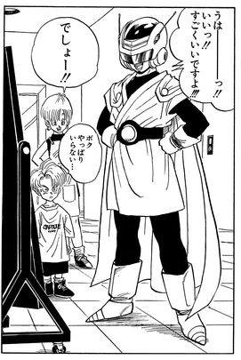 Depuis que les rumeurs d'un "Golden Warrior" ont commencé à circuler depuis que Gohan a utilisé sa forme de Super Saiyan pour se déguiser et traduire en justice de dangereux criminels, il a parlé à Bulma de la façon dont il pourrait mieux cacher son identité. Utilisant le même principe que les capsules Hoipoi, elle a transformé son costume en particules qui ont ensuite été stockées dans un appareil semblable à une montre que Gohan pouvait porter à son poignet. D'une simple pression sur un bouton, il pourrait se transformer en un super héros de la justice !